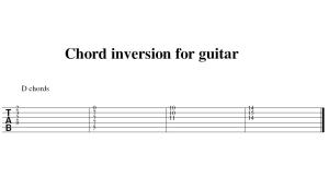 In the example on the right, there are a few inversions for a D chord. You will probably recognize the different shapes, if not, now you know. And you can apply the same idea for any chord. Good luck.